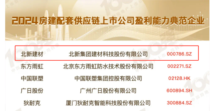 近日,“2024中國(guó)房地產(chǎn)及物業(yè)上市公司測(cè)評(píng)成果發(fā)布會(huì)”在深圳成功舉行。北新建材通過(guò)優(yōu)化產(chǎn)品結(jié)構(gòu),提升服務(wù)能力,向制造價(jià)值鏈延展,實(shí)現(xiàn)有質(zhì)量的增長(zhǎng),入選“2024房地產(chǎn)配套供應(yīng)鏈上市公司盈利能力典范企業(yè)”。