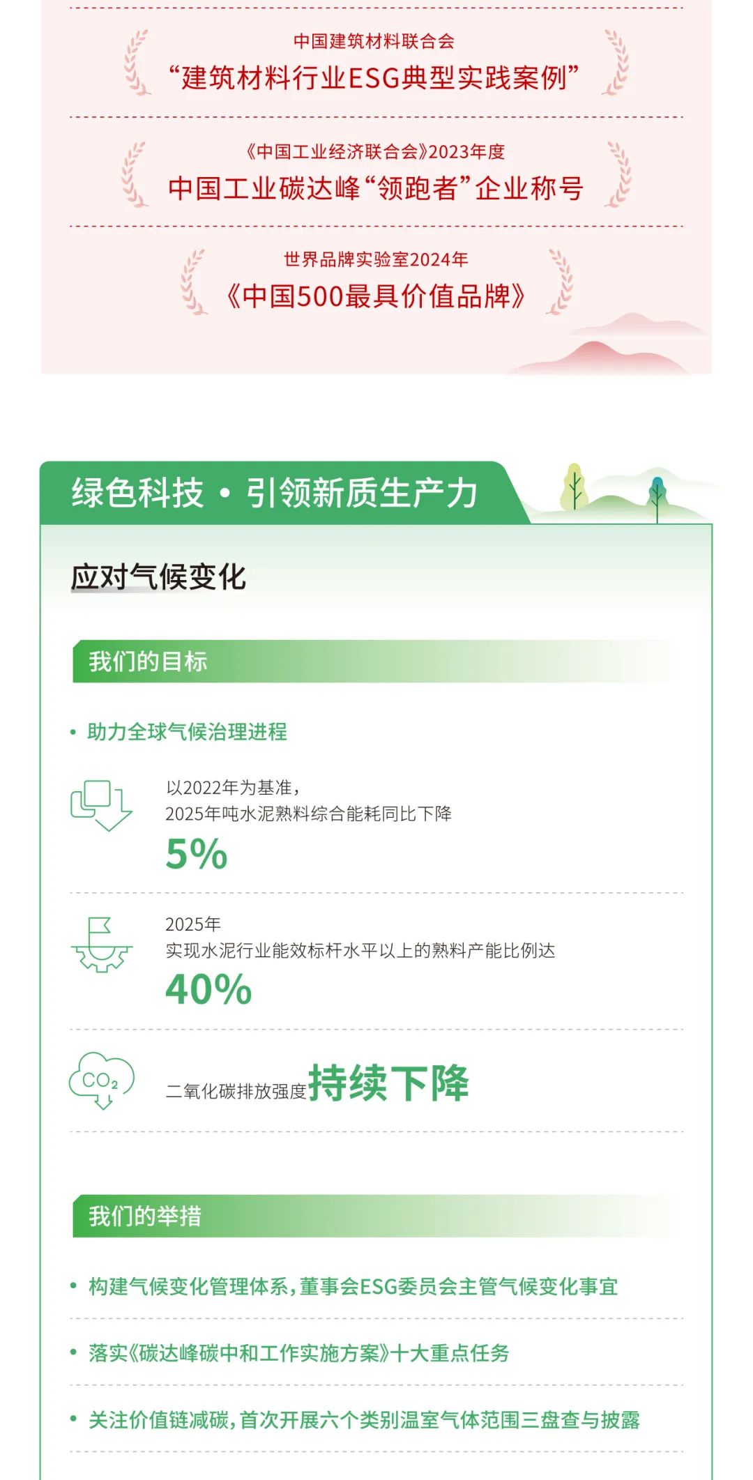 ESG實(shí)踐 | 一圖讀懂中國(guó)建材股份、天山股份2024年度環(huán)境、社會(huì)及管治報(bào)告