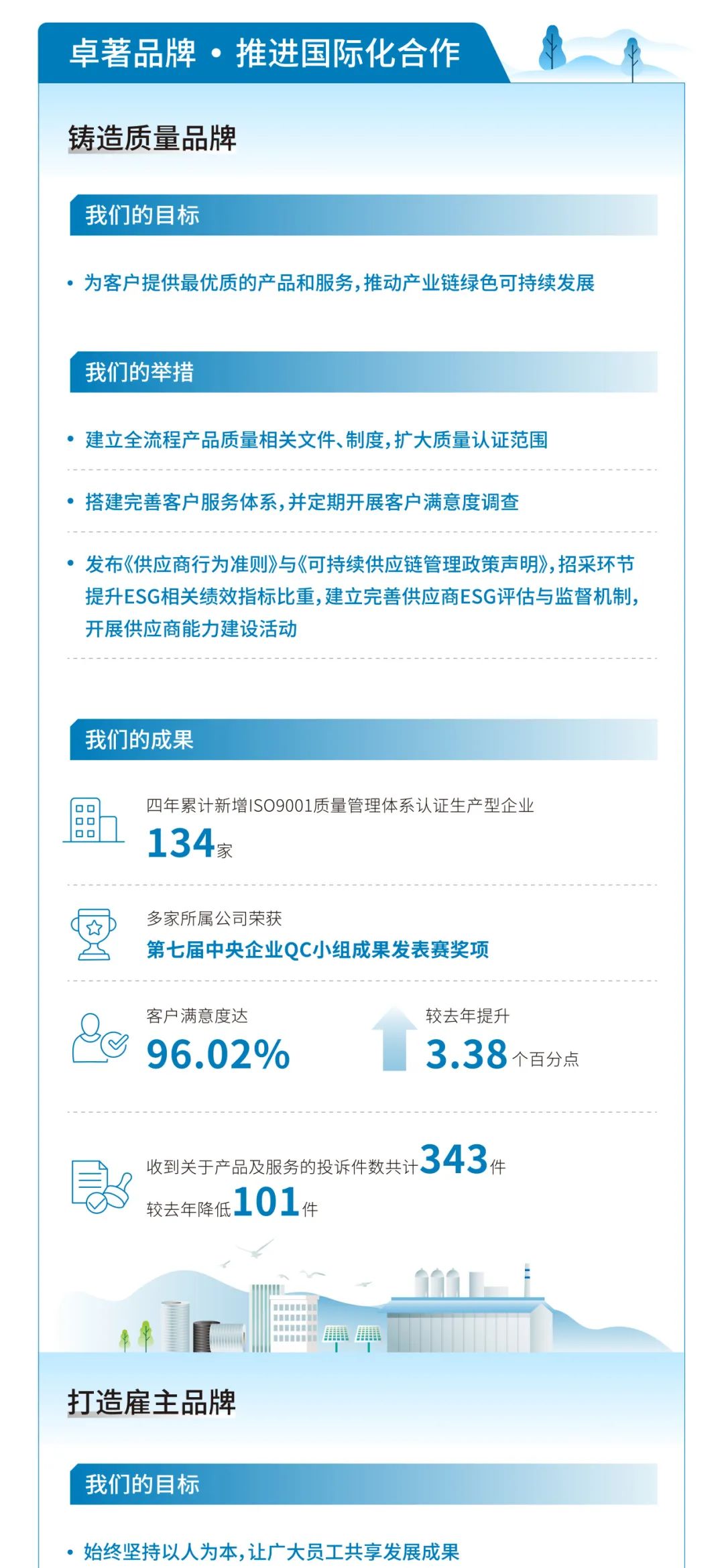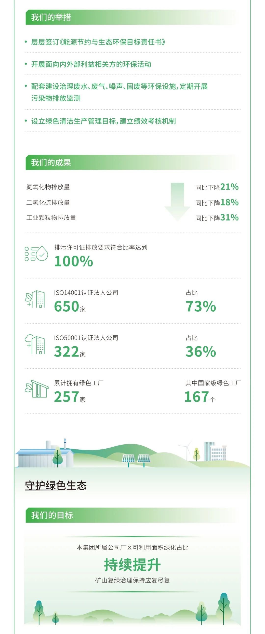 來(lái)源:中國(guó)建材股份、天山股份 發(fā)布時(shí)間:2025-04-07作為“中央企業(yè)ESG聯(lián)盟”首批成員企業(yè),中國(guó)建材集團(tuán)積極踐行ESG理念,以“材料創(chuàng)造美好世界”為使命,堅(jiān)持“善用資源、服務(wù)建設(shè)”的核心理念,秉承“創(chuàng)新、績(jī)效、和諧、責(zé)任”的核心價(jià)值觀,追求環(huán)境、社會(huì)及管治的協(xié)調(diào)共贏,將ESG理念最終落實(shí)在市場(chǎng)績(jī)效、科技創(chuàng)新、節(jié)能環(huán)保、員工關(guān)愛(ài)、企業(yè)公民等履責(zé)實(shí)踐之中,并不斷建立健全ESG工作機(jī)制與管理體系,積極推動(dòng)成員企業(yè)披露專(zhuān)項(xiàng)報(bào)告。目前,已實(shí)現(xiàn)集團(tuán)所屬13家上市公司ESG專(zhuān)項(xiàng)報(bào)告披露“全覆蓋”。