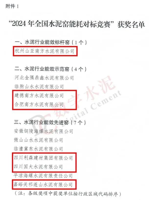 “2024年全國(guó)水泥窯能耗對(duì)標(biāo)競(jìng)賽”獲獎(jiǎng)名單