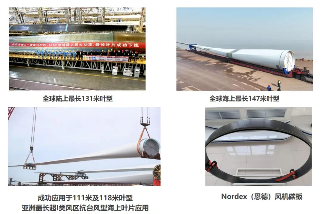 在新能源領(lǐng)域,碳纖維是“綠色動(dòng)能”的重要支撐。風(fēng)電方面,中復(fù)神鷹的SYT45F-48K拉擠板應(yīng)用于131米陸上風(fēng)電葉片、147米海上抗臺(tái)風(fēng)葉片,相同載荷下能減少10%的材料用量;光伏熱場(chǎng)領(lǐng)域,中復(fù)神鷹的產(chǎn)品占比超60%,預(yù)制體龍頭金博、天鳥(niǎo)的用量中,90%以上來(lái)自中復(fù)神鷹;氫能領(lǐng)域,中復(fù)神鷹的SYT49S-24K碳纖維用于Ⅲ型、Ⅳ型儲(chǔ)氫瓶,既保證儲(chǔ)氫密度,又守住安全底線。