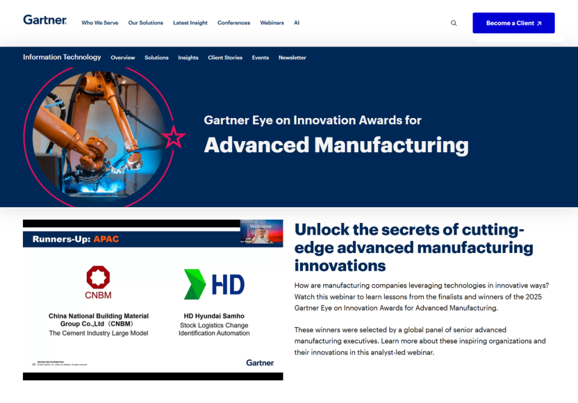 中國建材集團“水泥產(chǎn)業(yè)大模型”案例榮獲Gartner“創(chuàng)新之眼”先進制造賽道亞軍