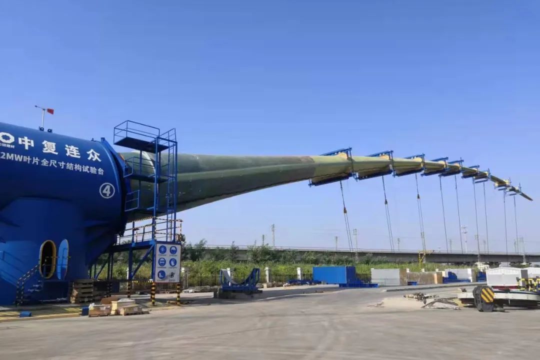 葉片國內(nèi)最長102米碳纖維葉片在江蘇省海上重點實驗室中復連眾檢測平臺一次性通過靜載測試