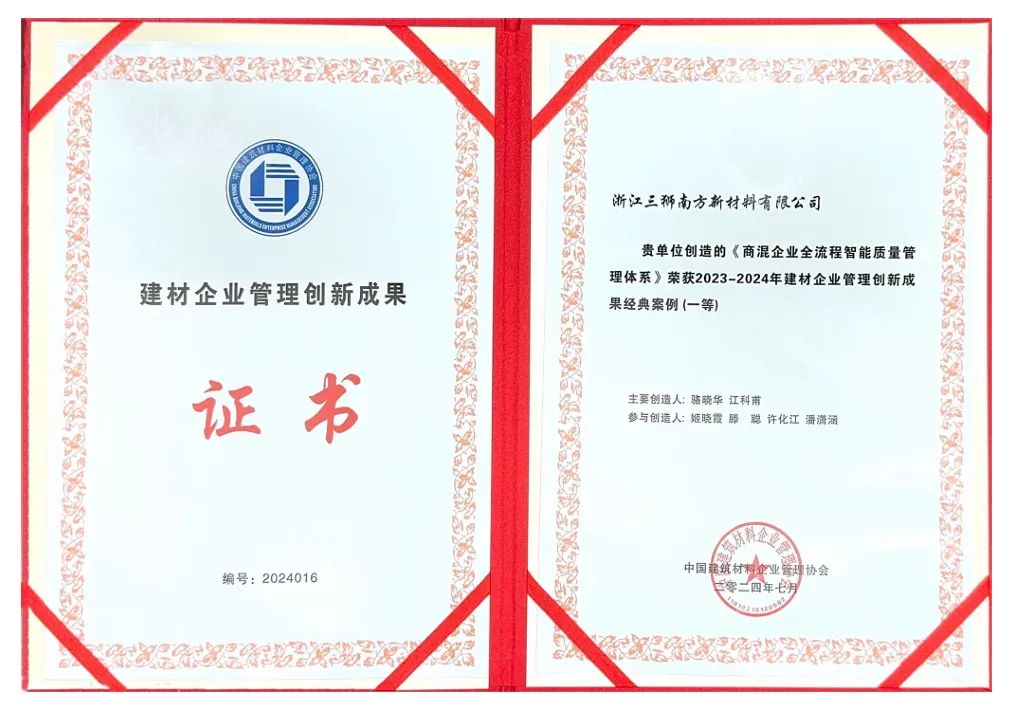 基礎(chǔ)建材業(yè)務(wù)是中國建材的壓艙石業(yè)務(wù),突圍與蝶變必須依靠轉(zhuǎn)變觀念,迭代升級。三獅材料深入學(xué)習(xí)貫徹黨的二十屆三中全會精神,始終高度重視技術(shù)研發(fā)與創(chuàng)新工作,堅持以自主創(chuàng)新引領(lǐng)高質(zhì)量發(fā)展,堅定不移地推動行業(yè)綠色化、數(shù)字化、智能化轉(zhuǎn)型升級,堅持創(chuàng)新驅(qū)動發(fā)展。目前,所屬13家企業(yè)獲評“綠色示范工廠”,獲得9項《計算機軟件著作權(quán)登記證書》,榮獲“中國最具成長性建材企業(yè)100強”等稱號,《商混企業(yè)應(yīng)收賬款智能風(fēng)險管理體系建設(shè)》獲得全國建材管理現(xiàn)代化一等獎、中國企業(yè)改革發(fā)展優(yōu)秀成果二等獎。未來,三獅材料將持續(xù)提高央企核心競爭力,加快形成新質(zhì)生產(chǎn)力,積極踐行“材料創(chuàng)造美好世界”的光榮使命。